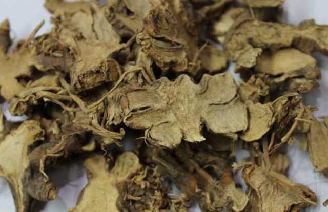 药材:呈不规则的结节状。表面黄褐色、棕褐色或黑褐色,皱缩,有较密的环纹。上面有数个圆盘状凹陷的茎痕;质硬,断面黄色,颗粒性。饮片:呈不规则形或长条形的薄片。切面淡黄色或鲜黄色,具散在小筋脉点或筋脉纹。
