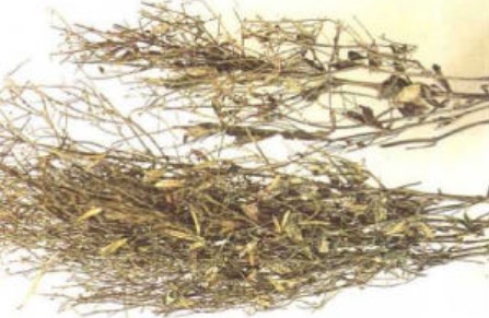 茎呈方柱形,多分枝,节稍膨大;质脆,易折断。单叶对生,叶柄短或近无柄;叶片皱缩、易碎,完整者展开后呈披针形或卵状披针形;上表面绿色,下表面灰绿色,两面光滑。气微,味极苦。
