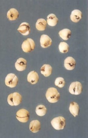 青贝:呈类扁球形。外层鳞叶 2 瓣,大小相近,相对抱合,顶端开裂,内有心芽和小鳞叶 2~3 枚及细圆柱形的残茎。